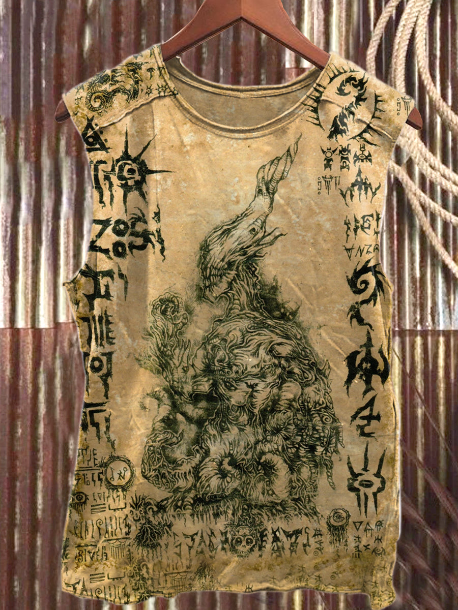 Retro Cthulhu Printed Casual Cotton Loose Tank Top