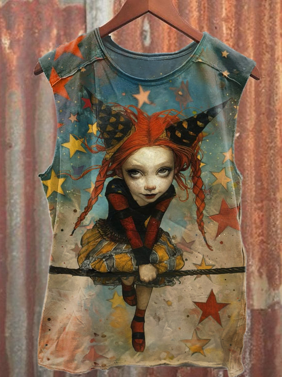 Retro Drama Troupe Graffiti Print Loose Casual Tank Top