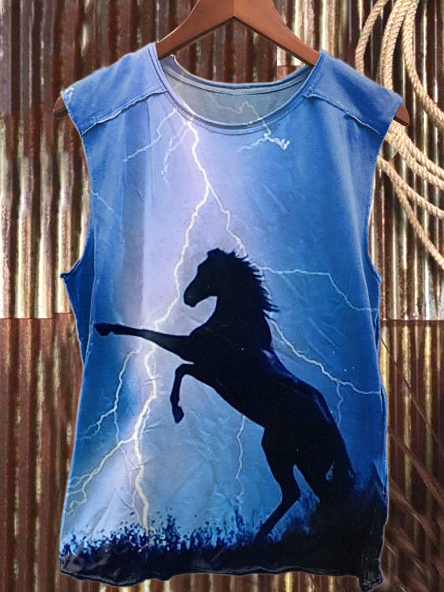 Retro Fashion Black Horse Art Print Cotton Tank Top