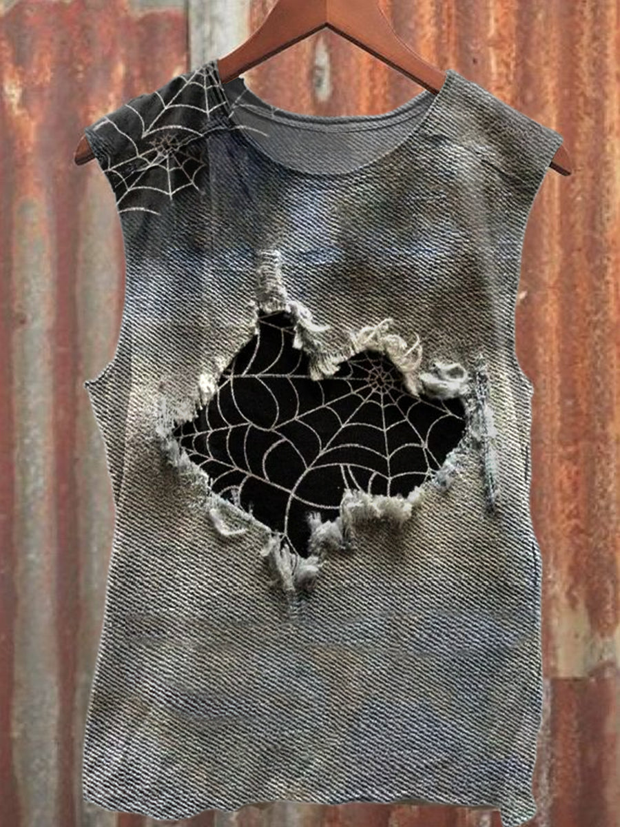 Retro Fashion Denim Ripped Print Casual Tank Top