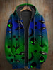 Retro Gradient Color Space Pattern Printed Casual Hooded Coat