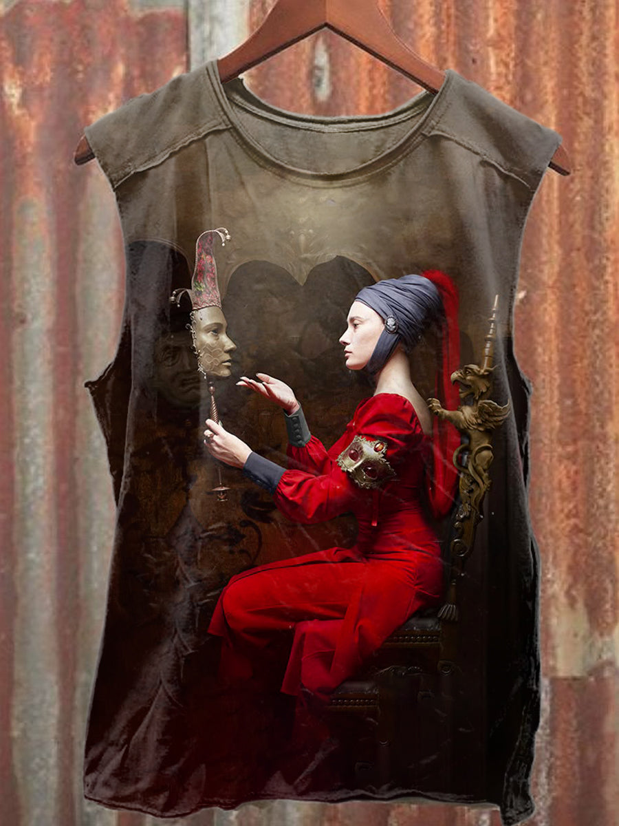 Retro Graffiti Print Casual Cotton Loose Tank Top