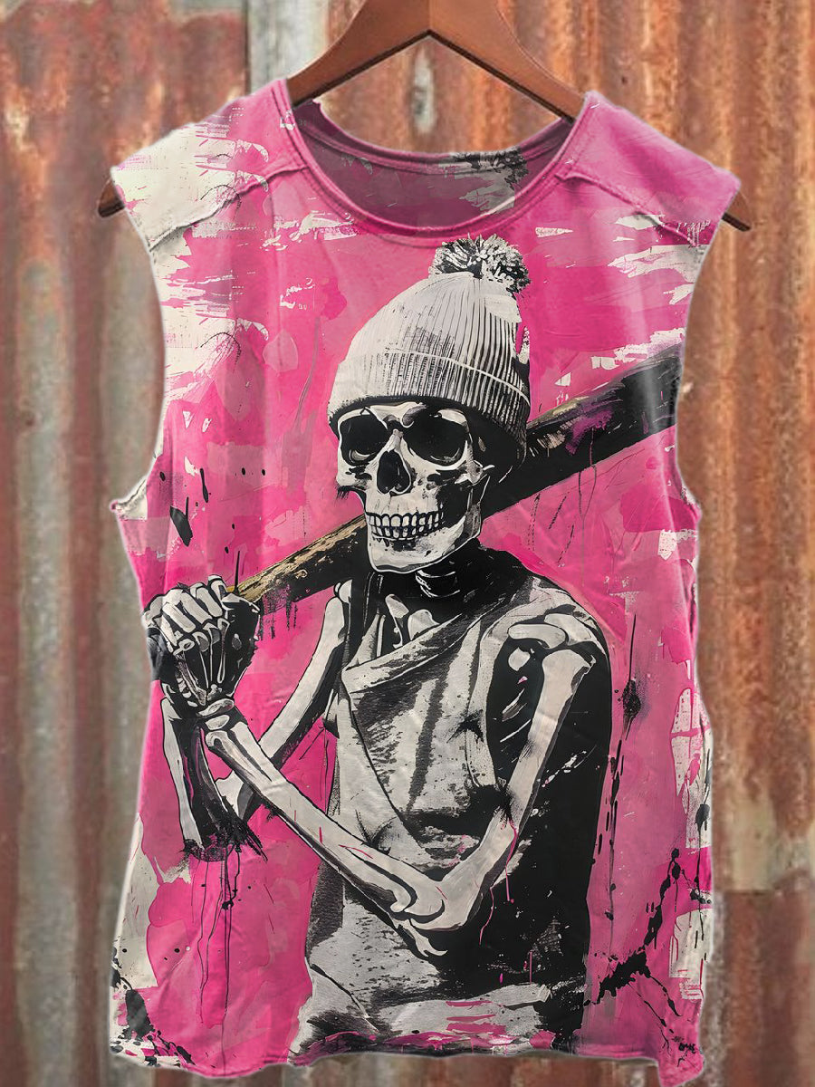 Retro Graffiti Print Casual Pure Cotton Tank Top