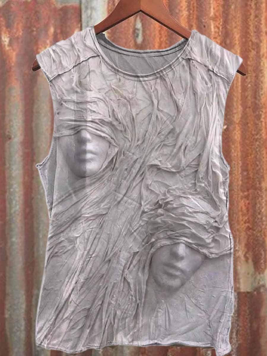 Retro Graffiti Print Casual Pure Cotton Tank Top