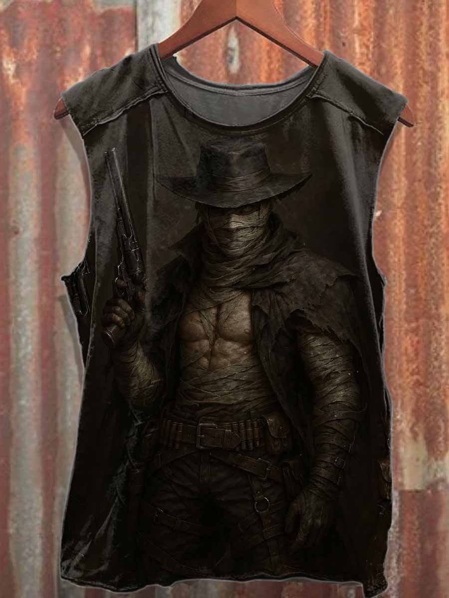 Retro Graffiti Print Loose Cotton Tank Top