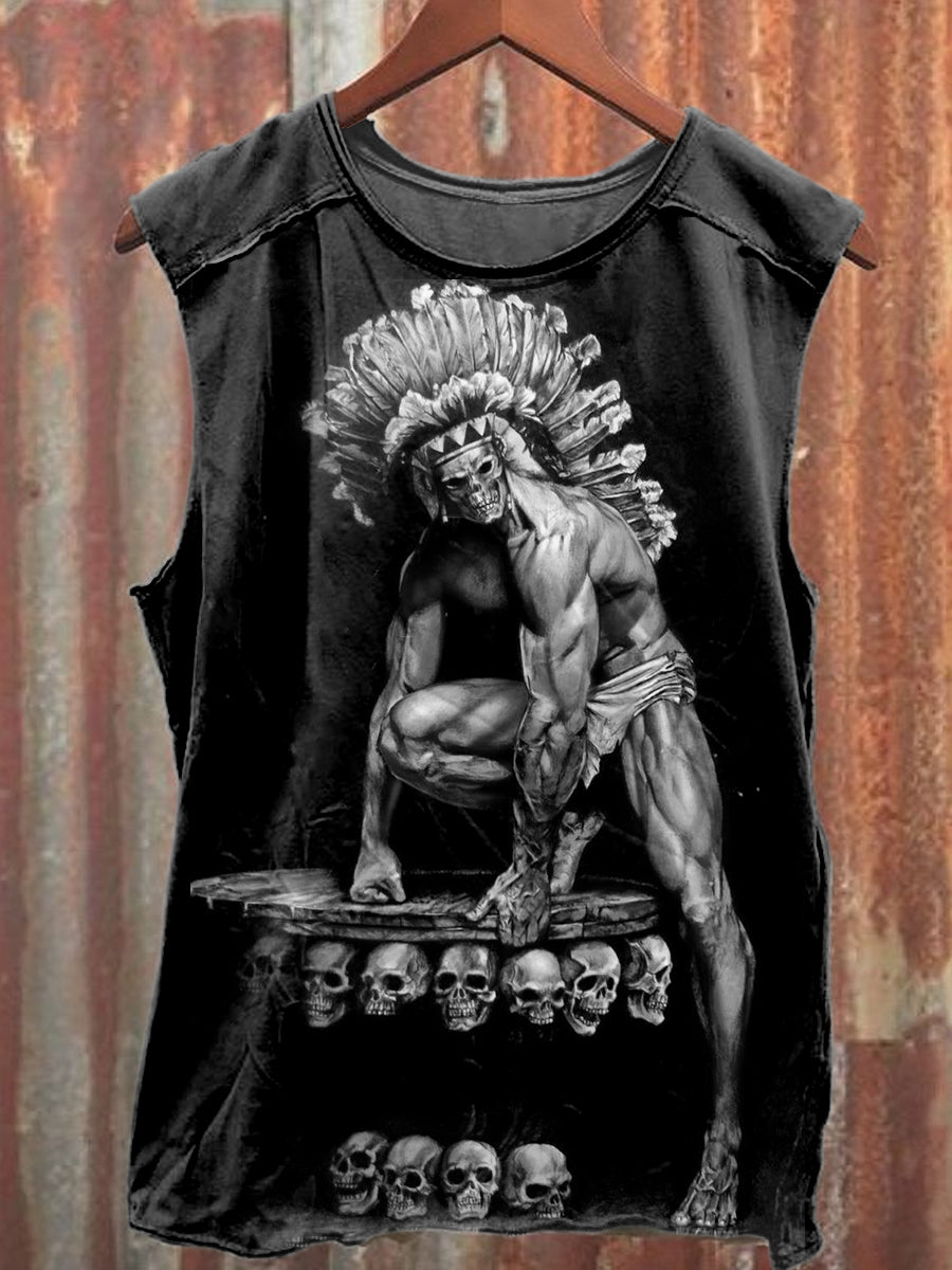 Retro Mayan Tribal Skull Print Fashion Loose Tank Top