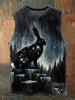 Retro Mystical Folk Black Rabbit Art Print Casual Tank Top