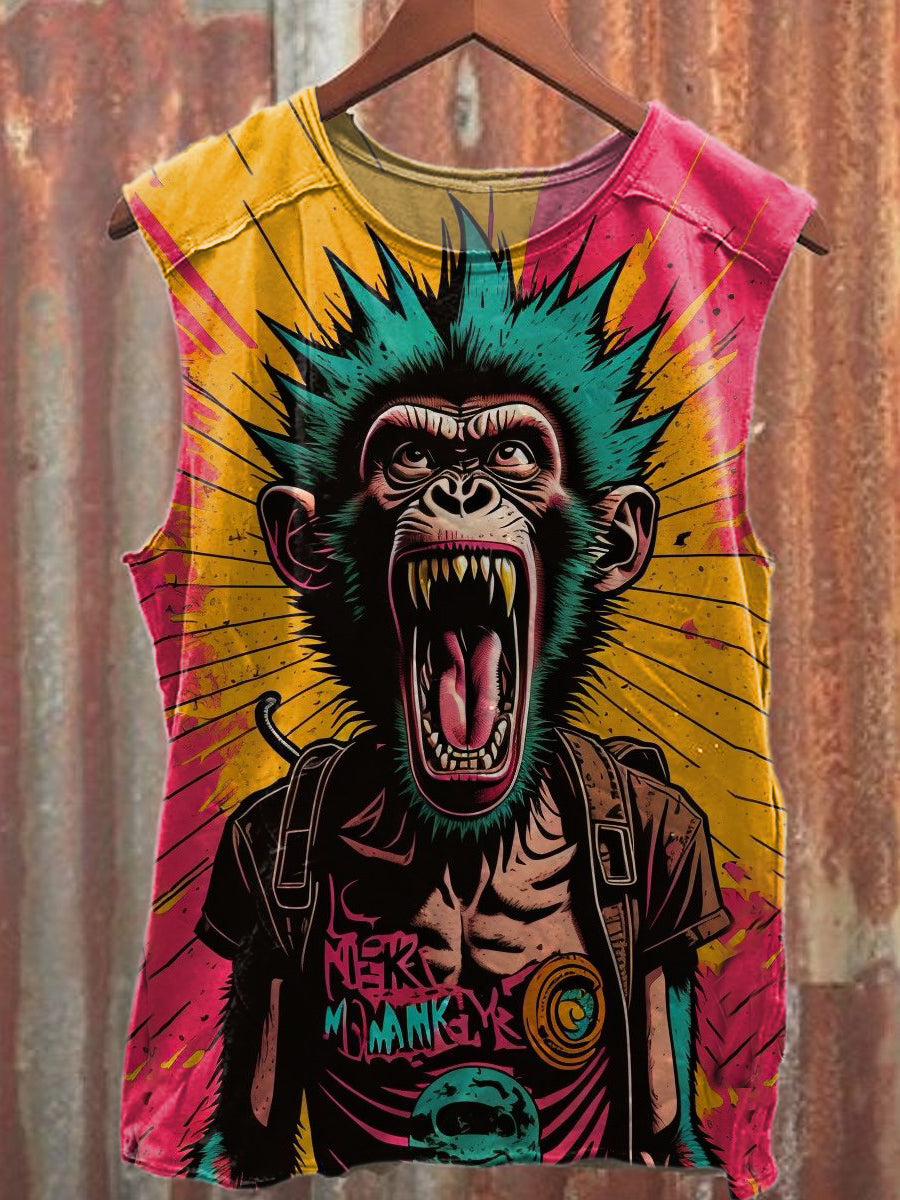 Retro Pop Art Monkey Graffiti Printed Casual Cotton Tank Top