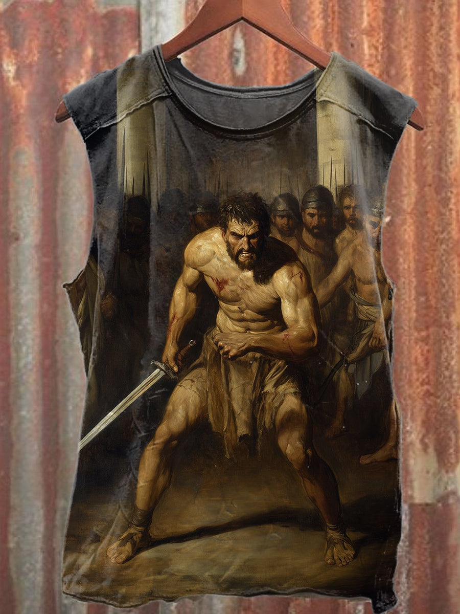 Roman Warrior Illustration Casual Cotton Loose Tank Top