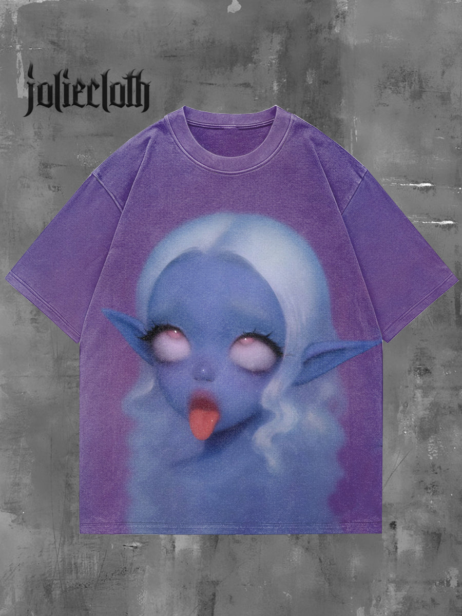 Unisex Abstract Elf Art Illustration Casual Cotton Short Sleeve T-Shirt