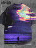 Unisex Abstract World Illustration Printed Casual Cotton Short Sleeve T-Shirt