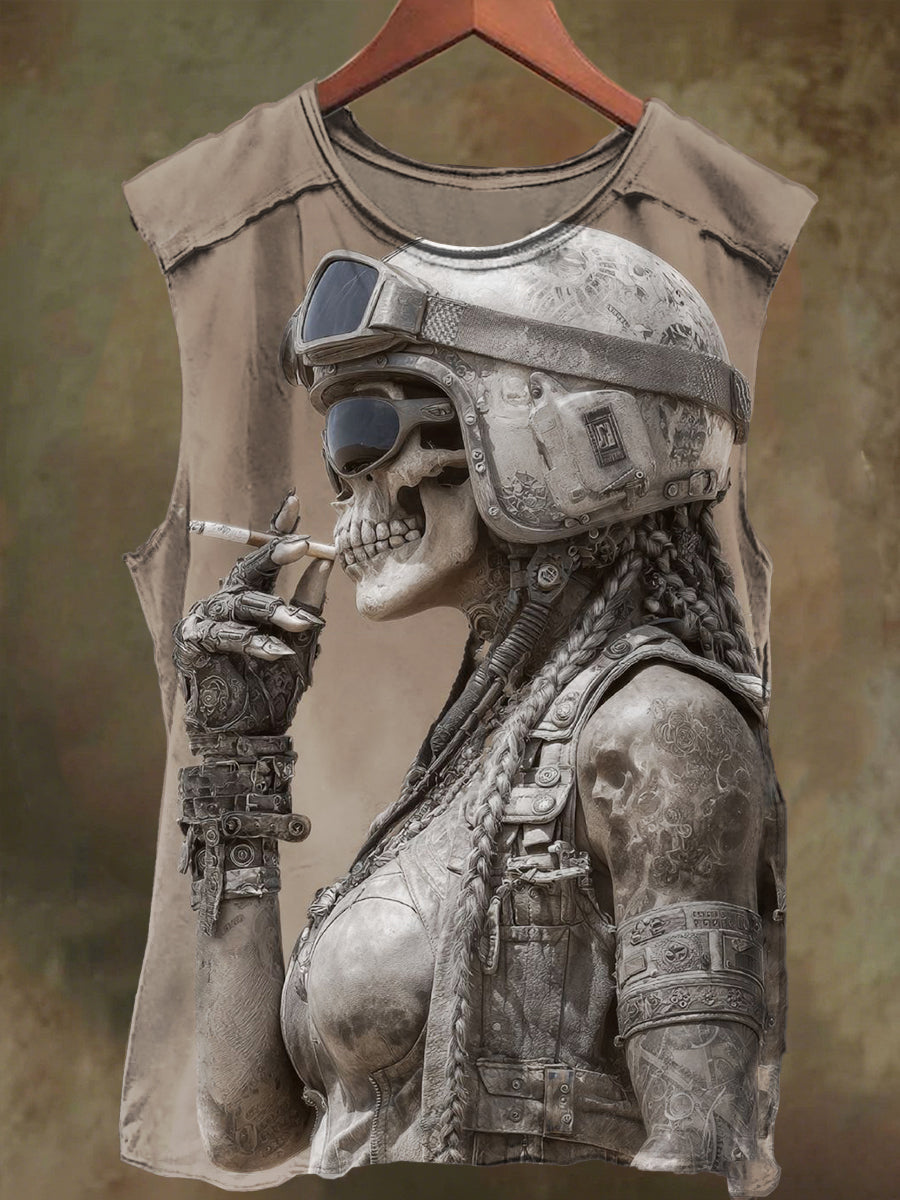 Unisex Aviator Women Skull Print Casual Cotton Tank Top