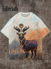 Unisex Christmas Deer Art Illustration Casual Cotton Short Sleeve T-Shirt