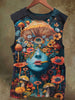 Unisex Colorful Mushroom Smoking Girl Print Casual Cotton Tank Top