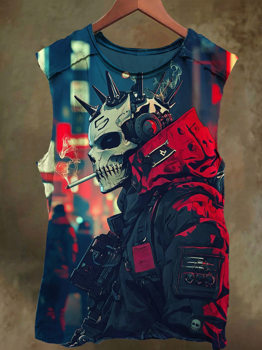 Unisex Dark Skull Smoking Print Casual Cotton Tank Top