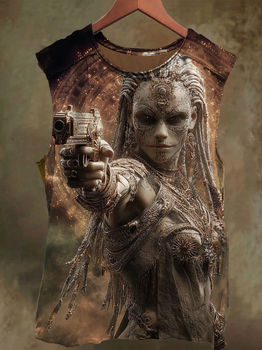 Unisex Ethnic Pistol Girl Print Casual Cotton Tank Top