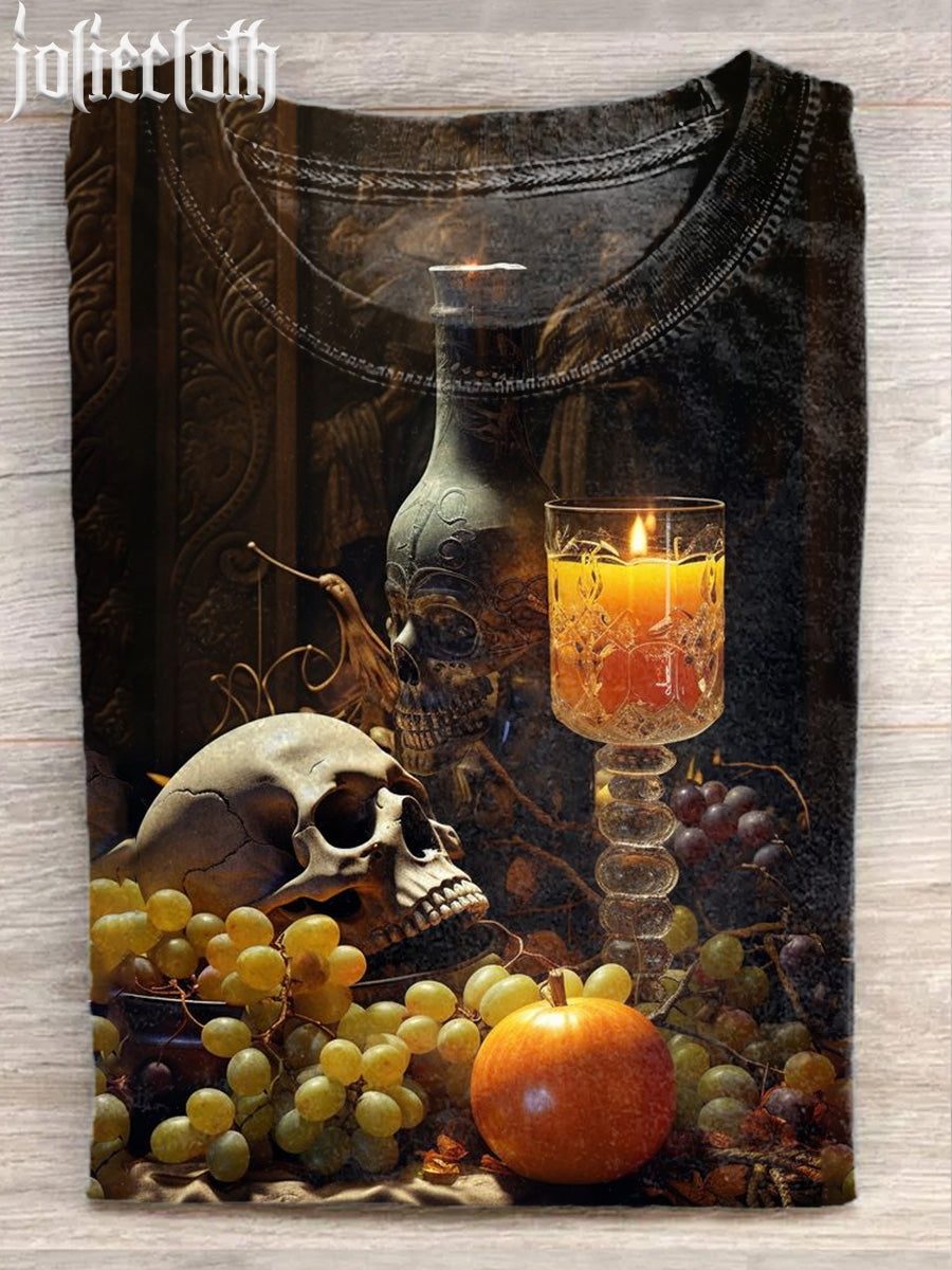 Unisex Fantasy Skull Art Illustration Printed Casual Cotton Short Sleeve T-Shirt