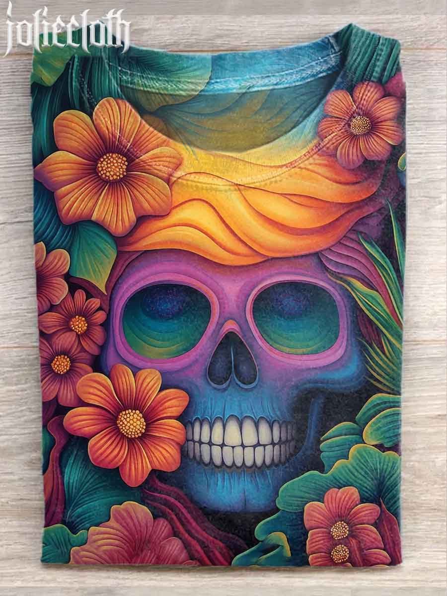 Unisex Fantasy Skull Illustration Print Casual Cotton Short Sleeve T-Shirt