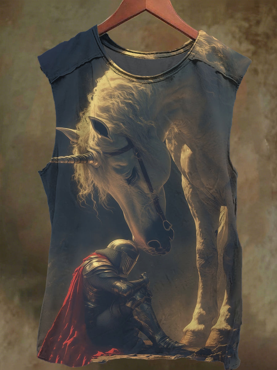 Unisex Fantasy White Horse and Knight Print Casual Cotton Tank Top