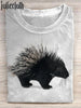 Unisex Fierce Hedgehog Art Illustration Printed Casual Cotton Short Sleeve T-shirt