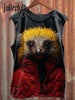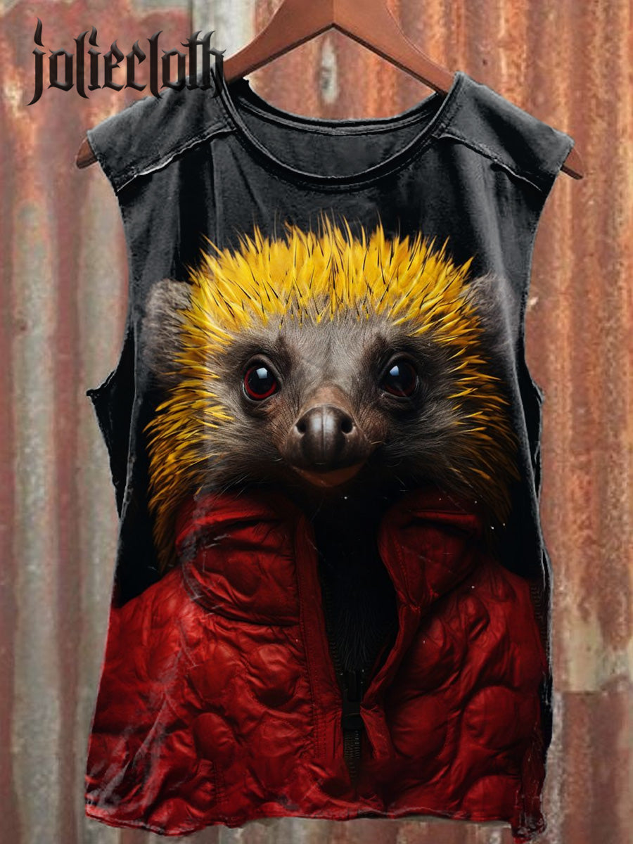 Unisex Funny Hedgehog Illustration Printed Casual Cotton Tank Top