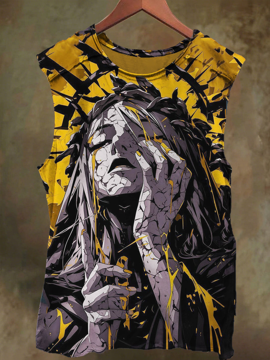 Unisex Girly Graffiti Stone Print Casual Cotton Tank Top