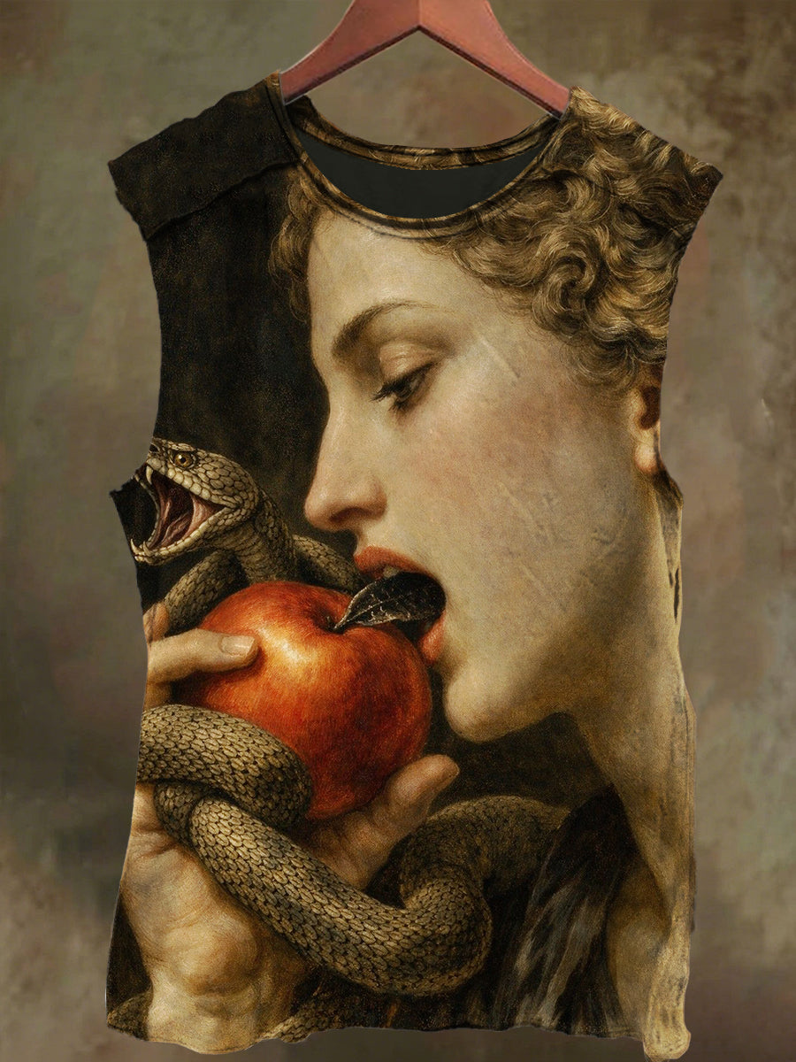Unisex Goddess and Apple Print Casual Cotton Tank Top