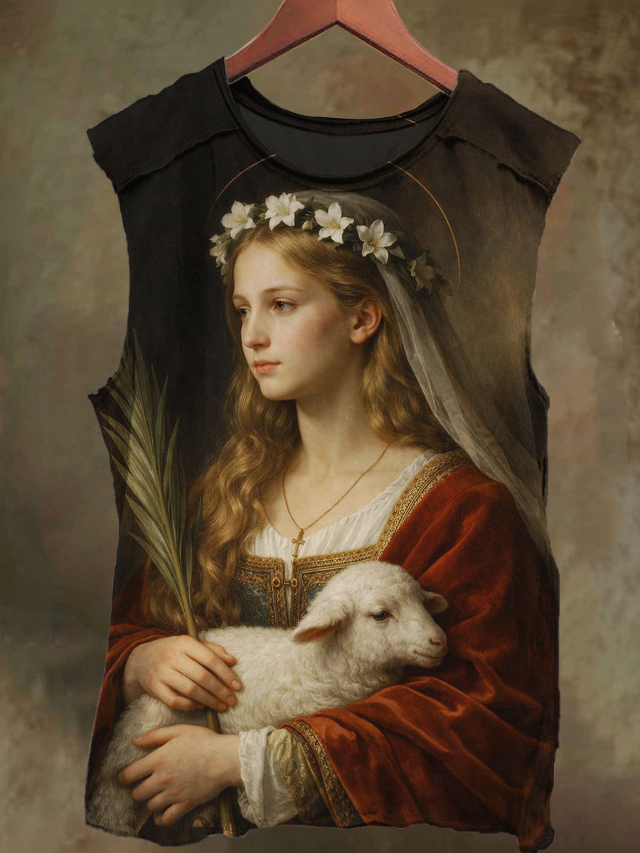 Unisex Goddess and Sheep Print Casual Cotton Tank Top
