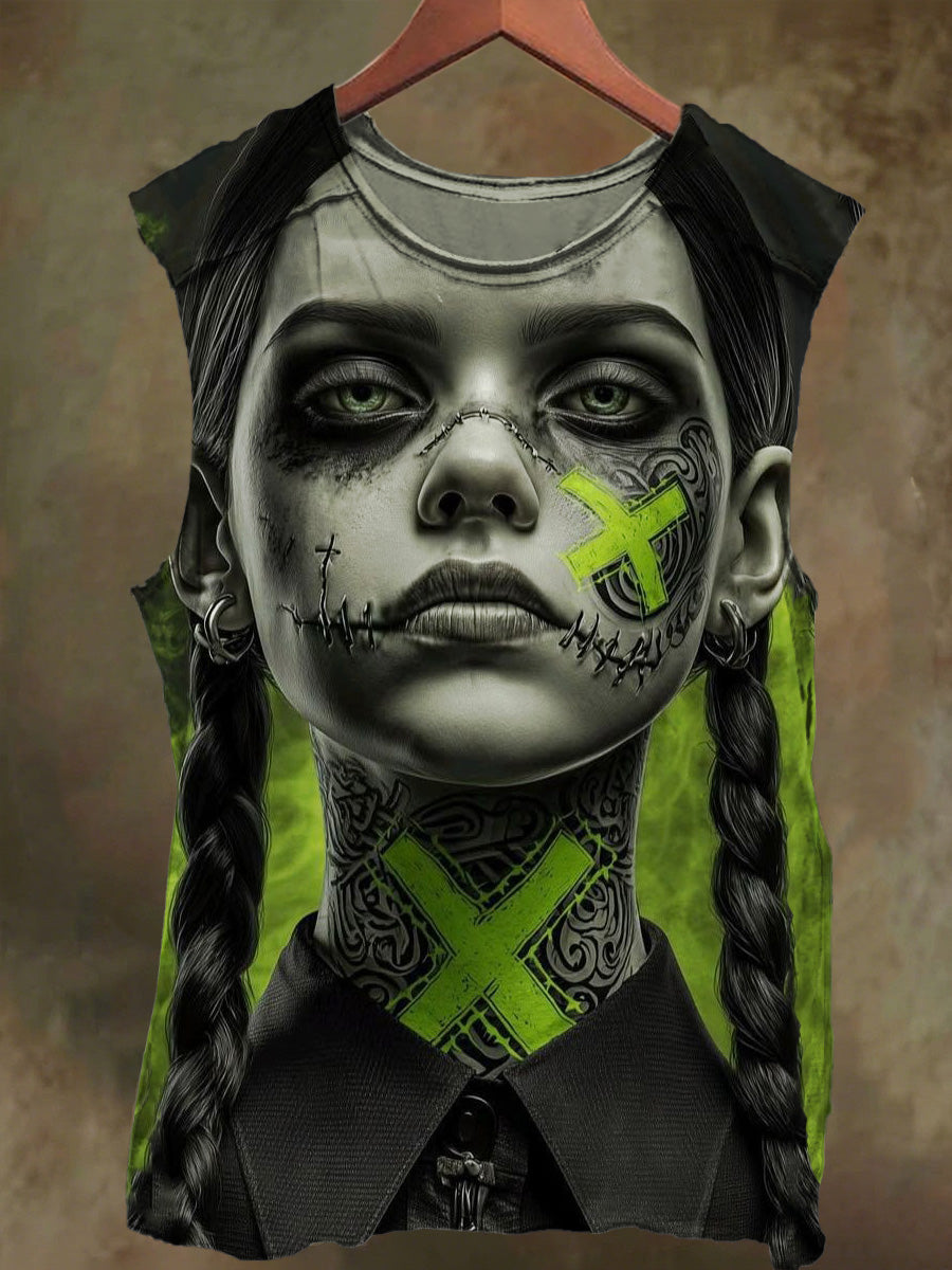 Unisex Gothic Dark Girl Print Casual Cotton Tank Top