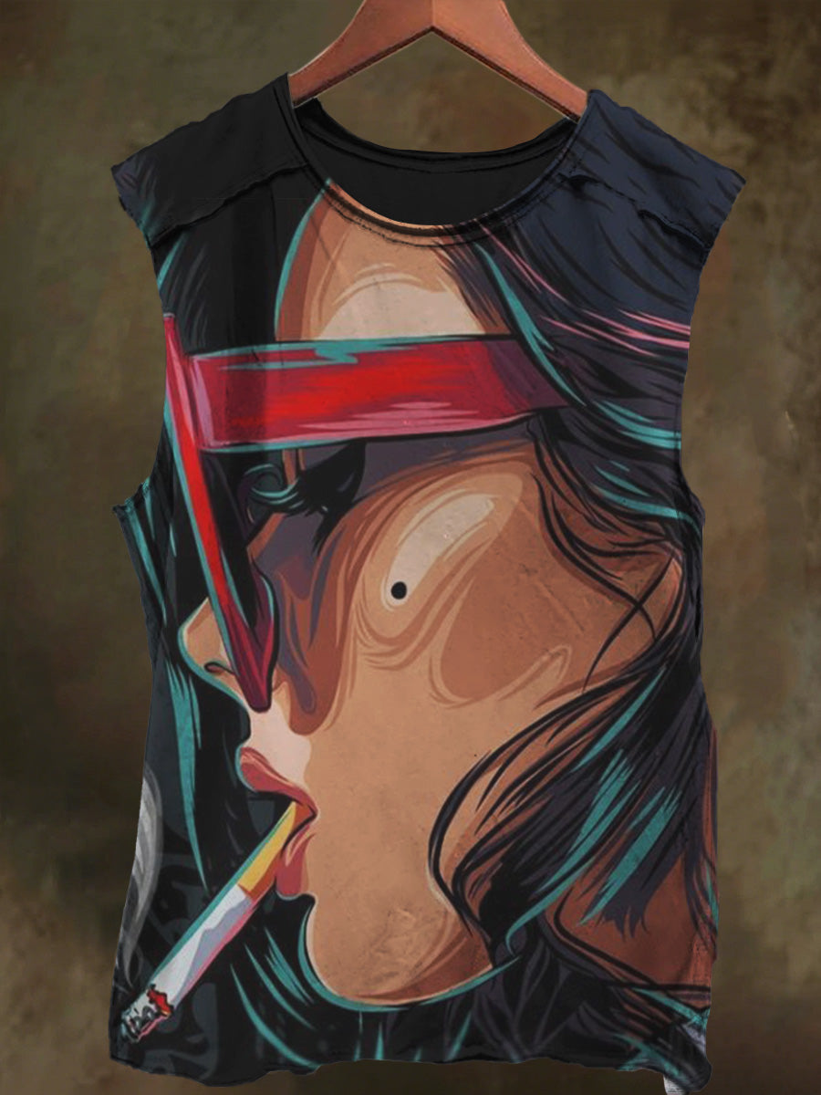 Unisex Graffiti Colorful Girl Print Casual Cotton Tank Top