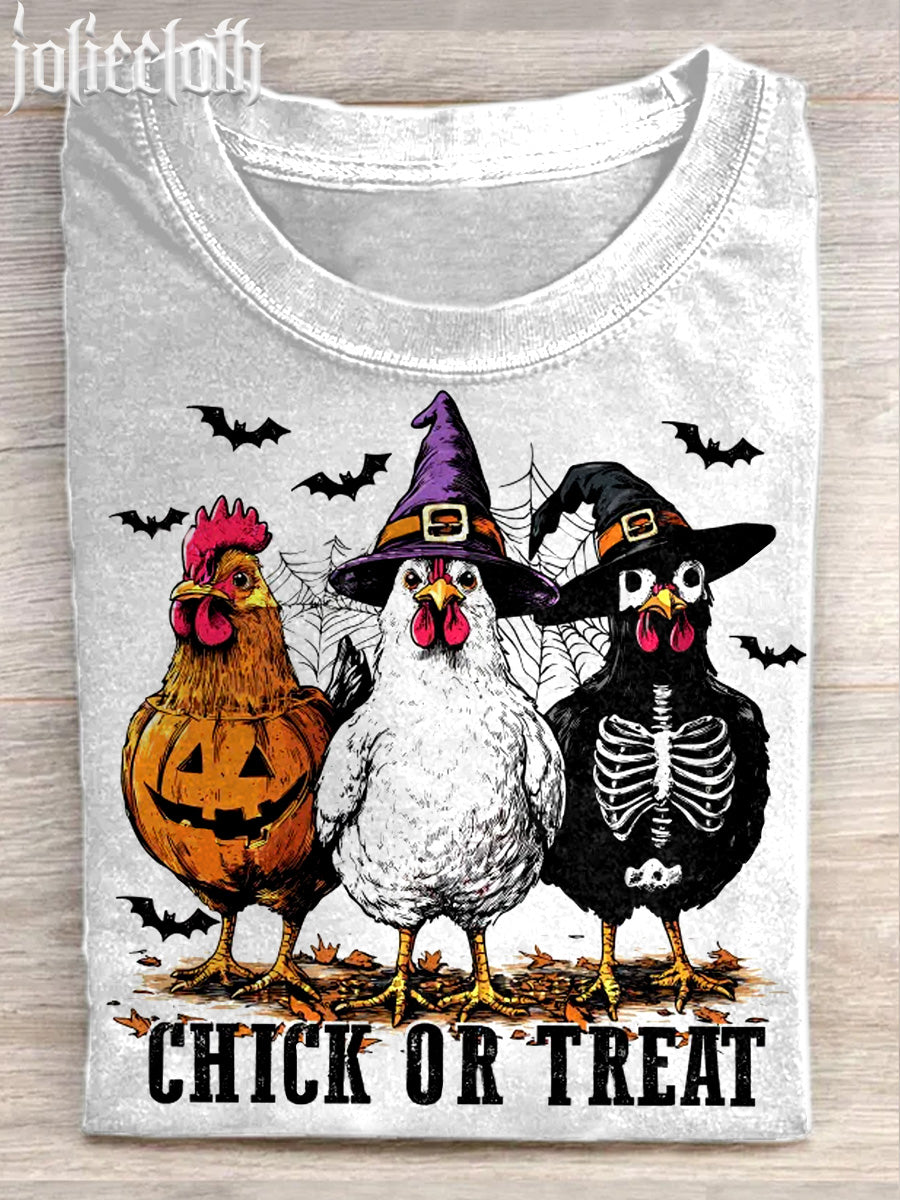 Unisex Halloween Rooster Illustration Printed Casual Short Sleeve T-Shirt