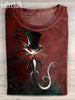 Unisex Halloween Witch Cat Illustration Casual Cotton Short Sleeve T-Shirt