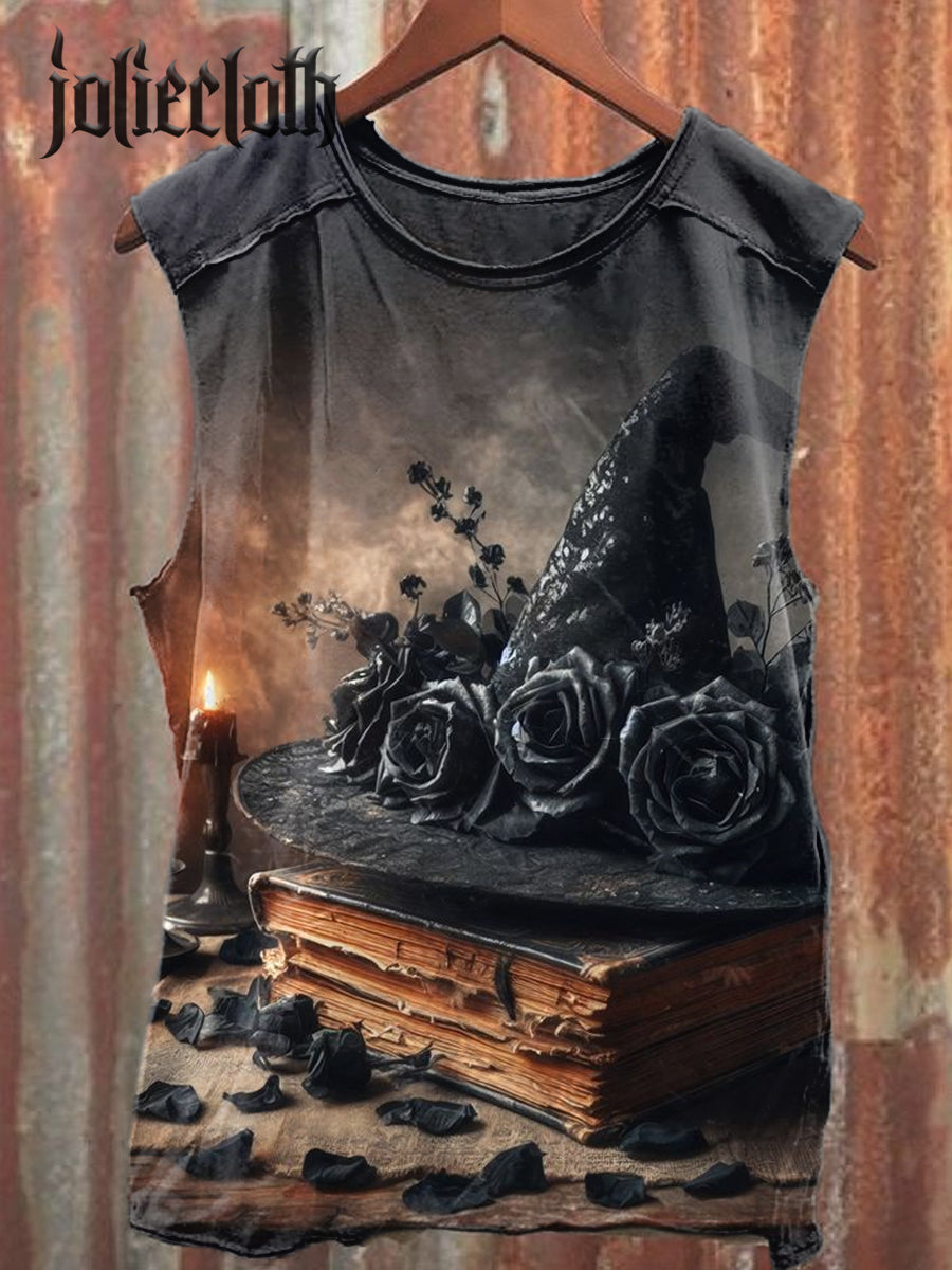 Unisex Halloween Witch Hat Illustration Printed Casual Cotton Tank Top