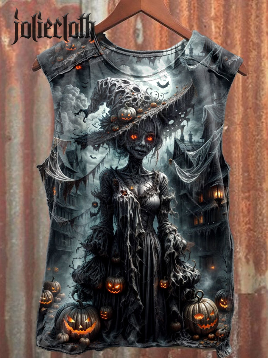 Unisex Halloween Witch Illustration Printed Casual Cotton Tank Top