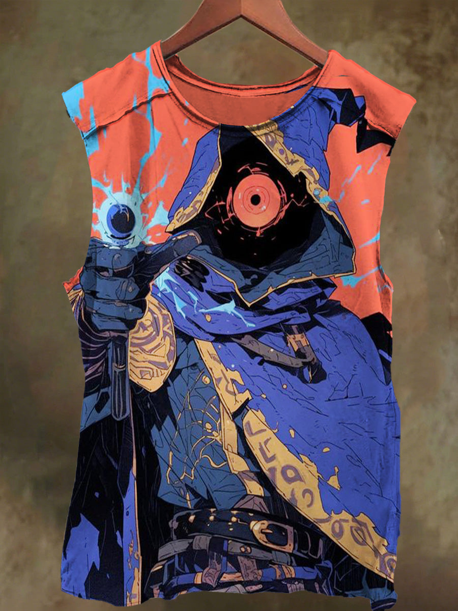 Unisex Hat Pistol Wizard Graffiti Print Casual Cotton Tank Top