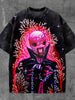 Unisex Horror Skull Illustration Print Casual Cotton Short Sleeve T-Shirt