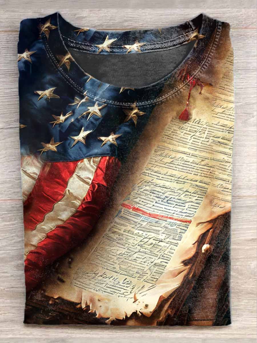 Unisex Independence Day Art Illustration Printed Casual T-Shirt