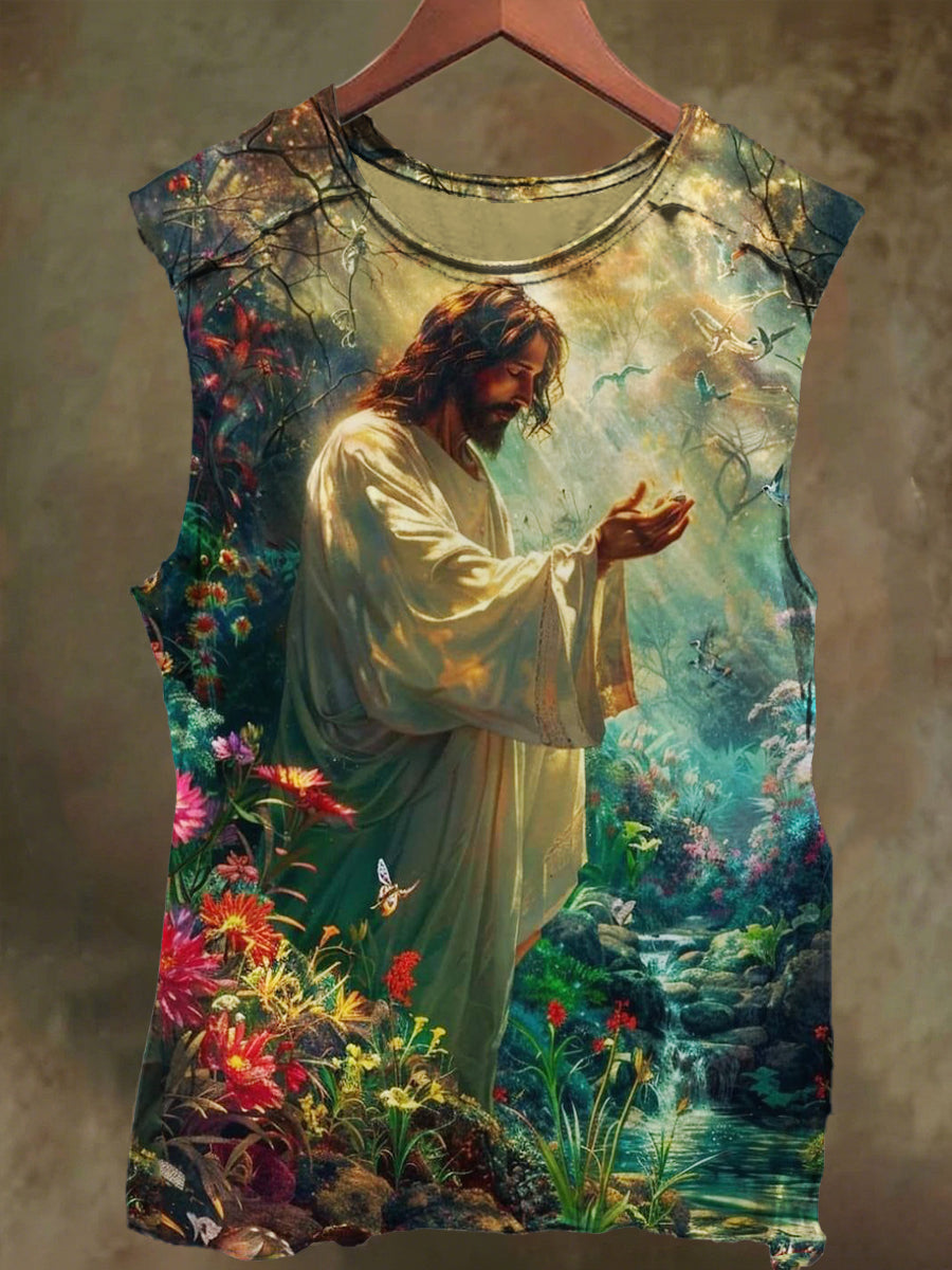 Unisex Jesus in the Light Print Casual Cotton Tank Top