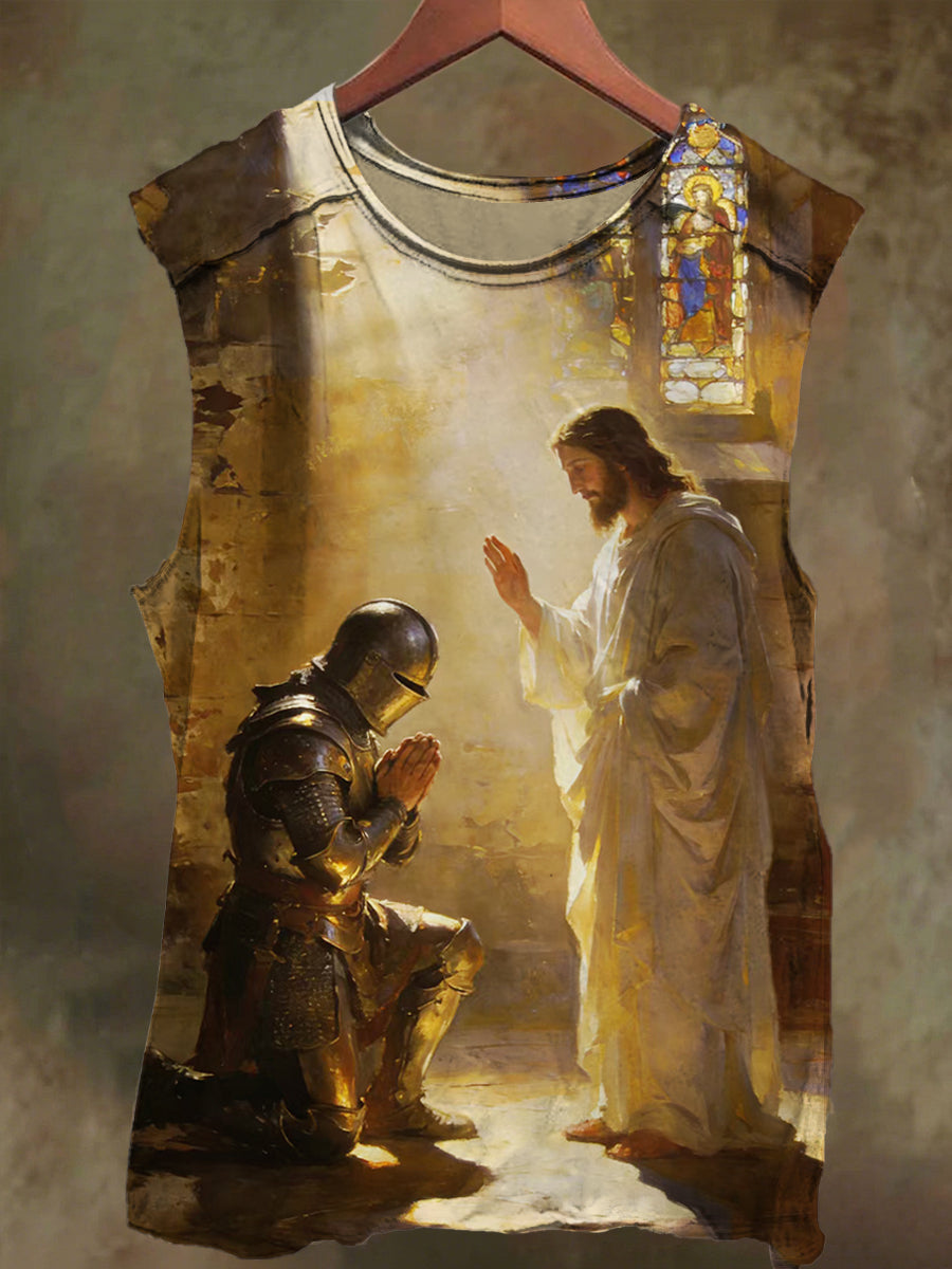 Unisex Jesus Knight Faith Print Casual Cotton Tank Top