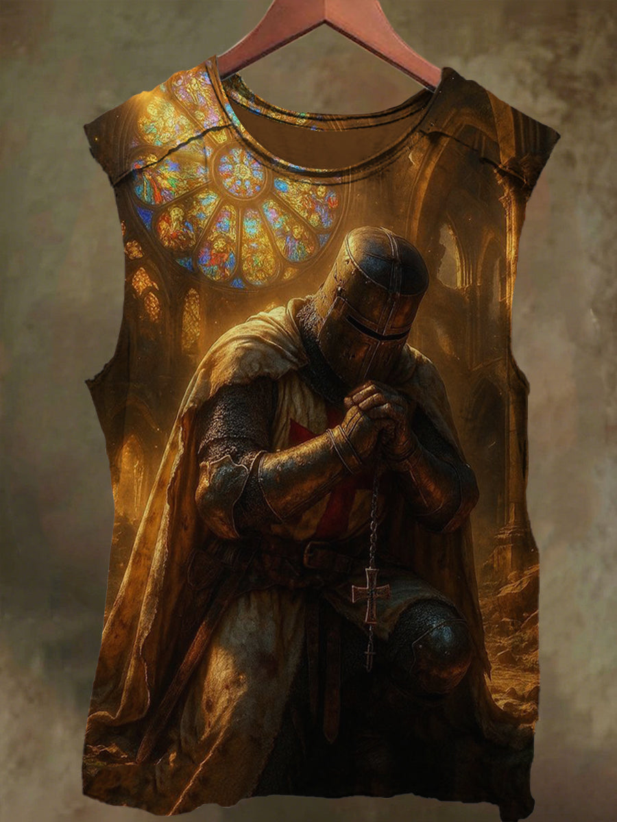 Unisex Knight Faith Prayer Print Casual Cotton Tank Top