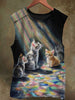 Unisex Light and Shadow Kitten Print Casual Cotton Tank Top