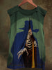 Unisex Magician Skull Print Casual Cotton Tank Top