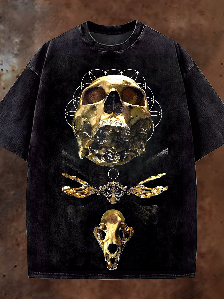 Unisex Metal Skull Art Print Casual Cotton Short Sleeve T-Shirt