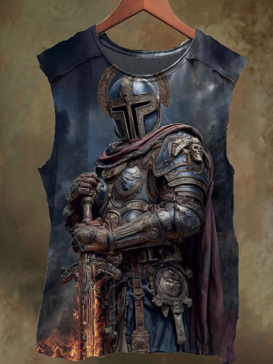 Unisex Midnight Cross Knight Print Casual Cotton Tank Top