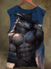 Unisex Muscle Wolf Teen Print Casual Cotton Tank Top
