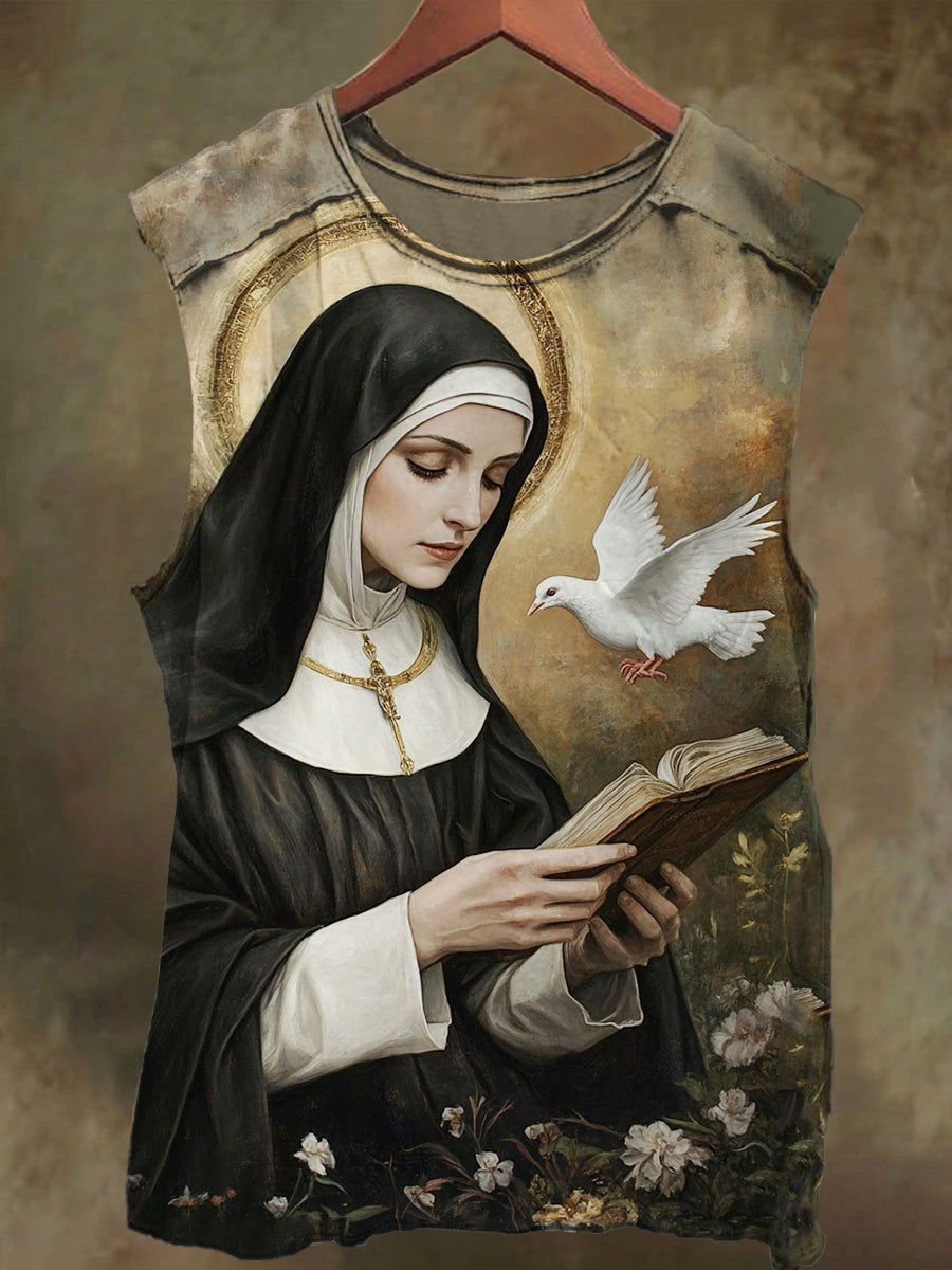 Unisex Peace Dove and Nun Print Casual Cotton Tank Top