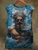 Unisex Poseidon in the Sea Print Casual Cotton Tank Top