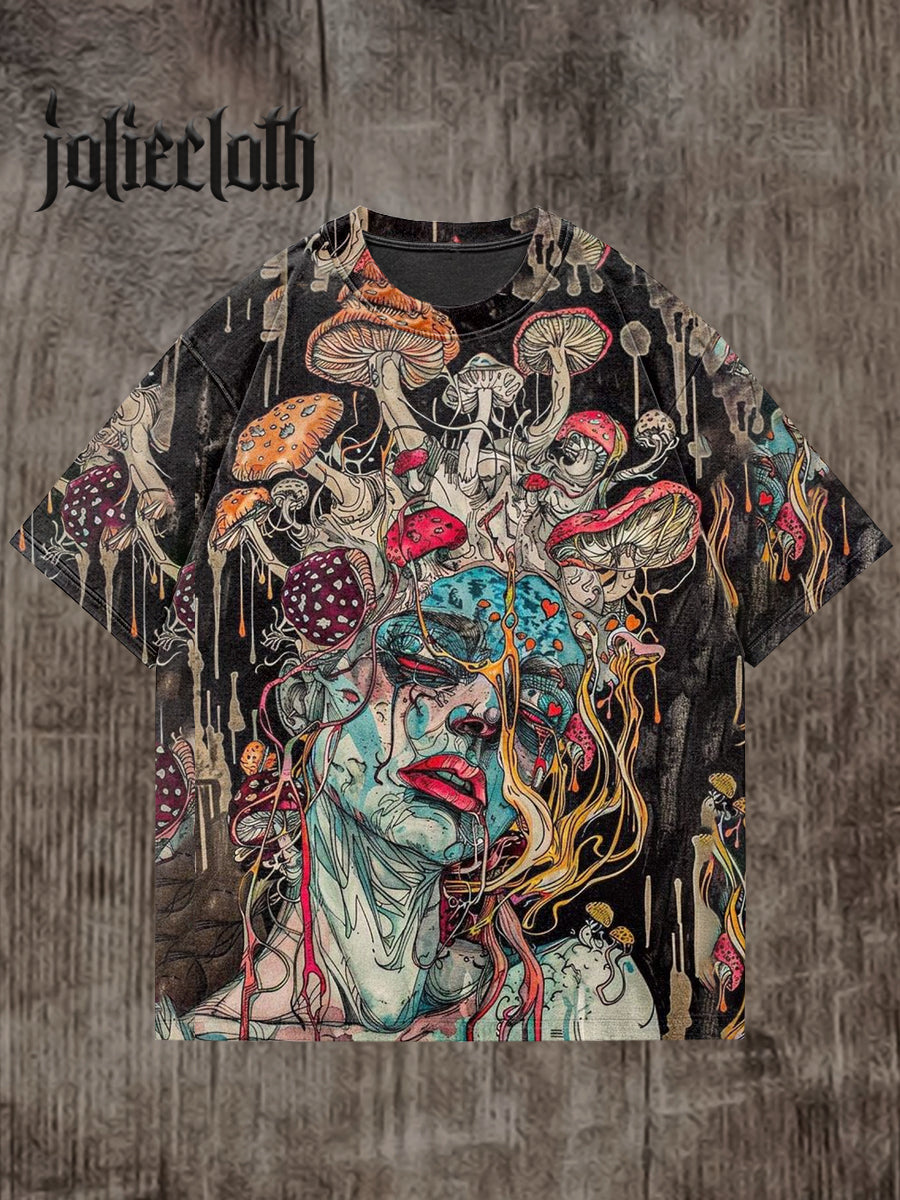 Unisex Psychedelic Mushroom Art Illustration Printed Casual Cotton Short Sleeve T-Shirt