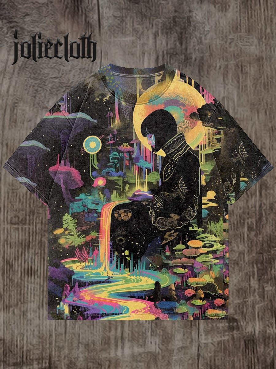 Unisex Psychedelic World Art Illustration Casual Cotton Short Sleeve T-Shirt