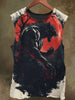 Unisex Red Moon and Wolf Print Casual Cotton Tank Top